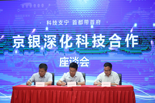 座談會(huì)上,北京市政府與銀川市政府簽訂深化科技合作框架協(xié)議,銀川市政府與項(xiàng)目運(yùn)營(yíng)企業(yè)簽訂銀川(北京)飛地科研育成基地建設(shè)和運(yùn)營(yíng)協(xié)議。姜志剛、隋振江和方正輝共同為銀川(北京)飛地科研育成平臺(tái)揭牌。