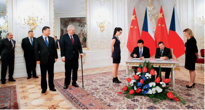 2016年3月29日,中國國家主席習(xí)近平和捷克總統(tǒng)米洛仕·澤曼共同見證中國外文局與捷克帕拉茨基大學(xué)簽署《習(xí)近平談治國理政》捷克文版暨中國主題圖書合作出版?zhèn)渫?/span>