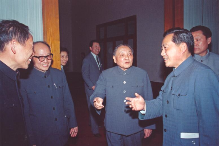 1985年4月,鄧小平同志在為外文局老專家愛潑斯坦慶祝70壽辰前,親切會(huì)見時(shí)任中國外文局局長范敬宜(右一)和時(shí)任《中國建設(shè)》(現(xiàn)《今日中國》)第一副總編輯張彥(左二)等