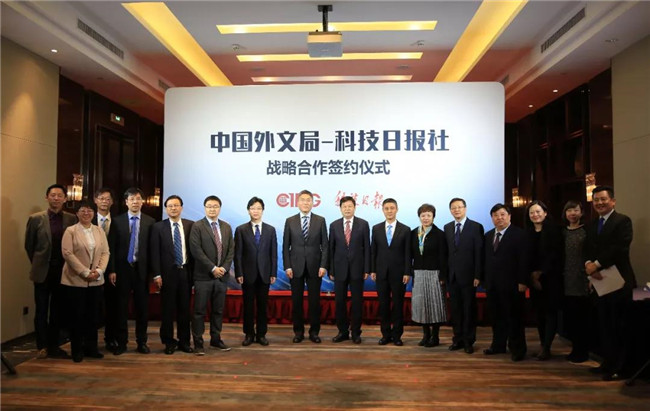 在活動現(xiàn)場,中國外文局副局長高岸明與科技日報社副社長房漢廷簽署了戰(zhàn)略合作協(xié)議,聯(lián)合工作機構(gòu)——國際科技傳播中心正式揭牌成立。