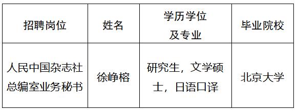 中國(guó)外文局所屬人民中國(guó)雜志社2020年公開(kāi)招聘擬聘用人員公示