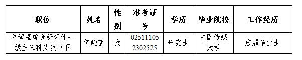 根據(jù)中央機(jī)關(guān)及其直屬機(jī)構(gòu)2020年度考試錄用公務(wù)員工作有關(guān)要求,經(jīng)過筆試、面試、考察、體檢等程序,擬遞補(bǔ)錄用何曉菡同志為中國外文局機(jī)關(guān)工作人員,現(xiàn)予以公示。公示期間,如有問題,請向中國外文局人事部反映。