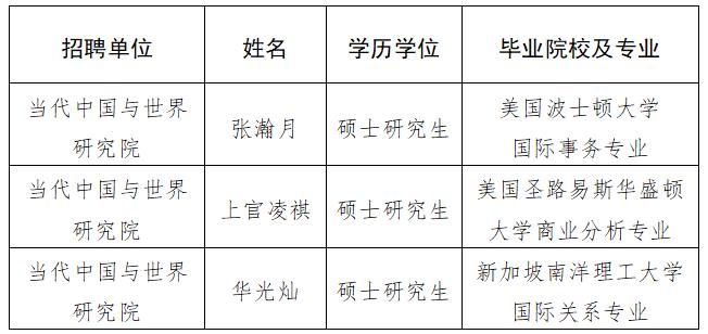 根據(jù)有關(guān)規(guī)定和《中國外文出版發(fā)行事業(yè)局所屬企事業(yè)單位2021年海外留學(xué)生招聘簡章》,現(xiàn)將中國外文局當(dāng)代中國與世界研究院2021年度擬接收海外留學(xué)生予以公示。公示期間,如有問題,請向中國外文局反映。