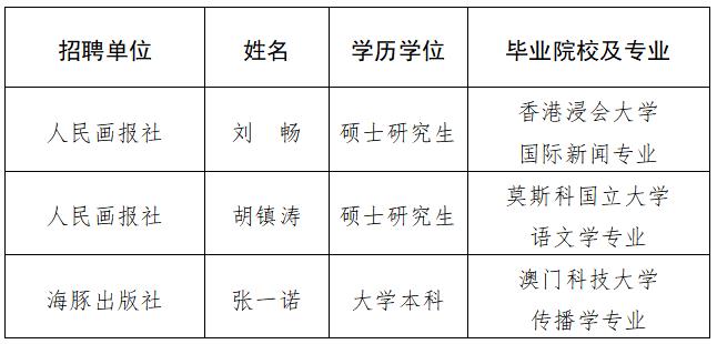 根據(jù)有關(guān)規(guī)定和《中國外文出版發(fā)行事業(yè)局所屬企事業(yè)單位2021年海外留學(xué)生招聘簡章》,現(xiàn)將中國外文局人民畫報社、海豚出版社2021年度擬接收海外留學(xué)生予以公示。公示期間,如有問題,請向中國外文局反映。