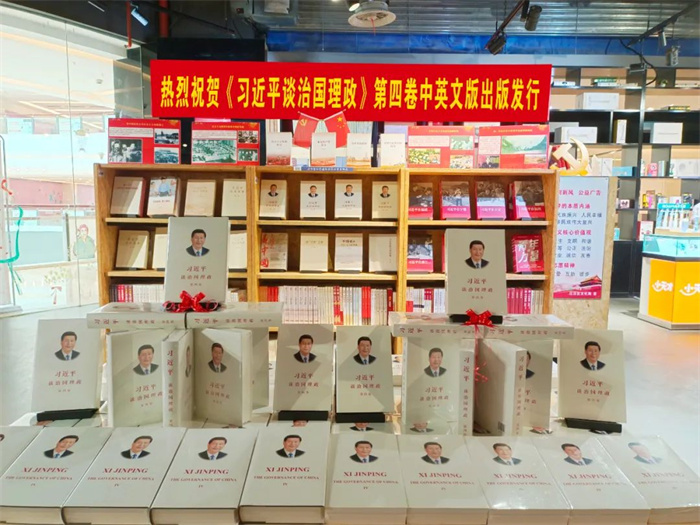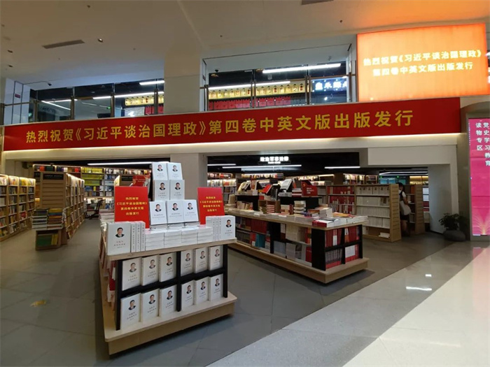以下為《習(xí)近平談治國理政》第四卷中英文版圖書在廣東、廣西、海南、湖北、湖南、河南主要書店上架銷售及讀者閱讀的場面。