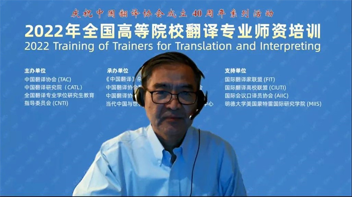 7月16日,由中國(guó)外文局所屬中國(guó)翻譯協(xié)會(huì)、中國(guó)翻譯研究院和全國(guó)翻譯專業(yè)學(xué)位研究生教育指導(dǎo)委員會(huì)聯(lián)合主辦,《中國(guó)翻譯》雜志社、中國(guó)翻譯協(xié)會(huì)翻譯理論與翻譯教學(xué)委員會(huì)、中國(guó)翻譯協(xié)會(huì)對(duì)外話語(yǔ)體系研究委員會(huì)、當(dāng)代中國(guó)與世界研究院對(duì)外話語(yǔ)創(chuàng)新研究中心聯(lián)合承辦的2022年全國(guó)高等院校翻譯專業(yè)師資培訓(xùn)在線上開幕。
