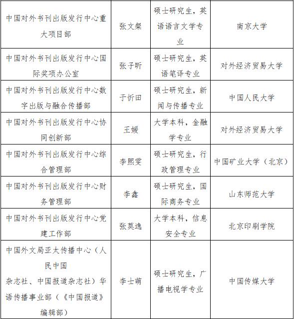 當(dāng)代中國與世界研究院、中國對外書刊出版發(fā)行中心、中國外文局亞太傳播中心2022年公開招聘擬聘用人員公示