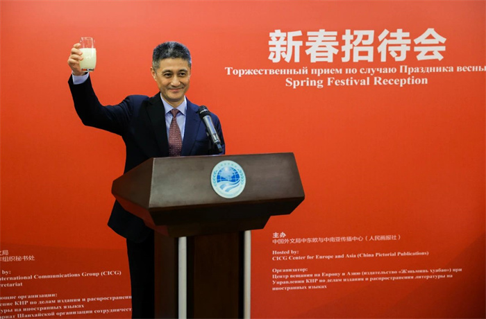 1月13日,上合組織國家駐華使節(jié)新春招待會在京舉辦。本次活動(dòng)由中國外文局、上海合作組織秘書處指導(dǎo),中國外文局中東歐與中南亞傳播中心(人民畫報(bào)社)主辦,中國—上海合作組織地方經(jīng)貿(mào)合作示范區(qū)管理委員會支持。中國外文局局長杜占元、上合組織秘書長張明出席招待會。