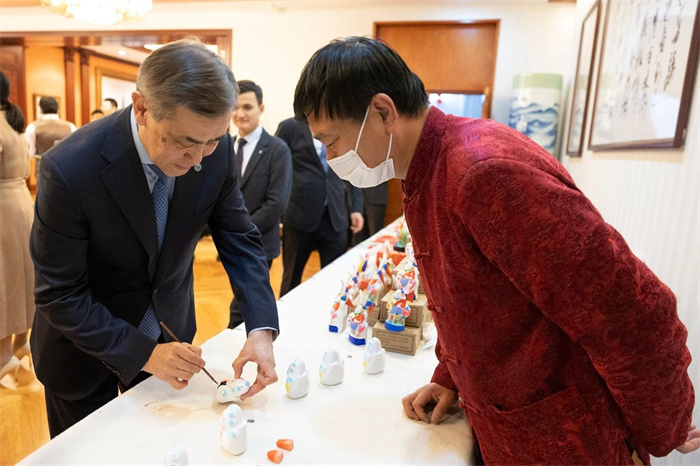招待會上,駐華使節(jié)共同欣賞傳統(tǒng)藝術(shù)表演,體驗(yàn)北京泥彩塑、膠州剪紙等非遺技藝,并共寫書法長卷,感受中國傳統(tǒng)春節(jié)習(xí)俗。與會嘉賓互道節(jié)日祝福,暢談未來合作與發(fā)展愿望,現(xiàn)場掌聲、音樂聲、歡笑聲此起彼伏,充滿了喜樂祥和的節(jié)日氣氛。