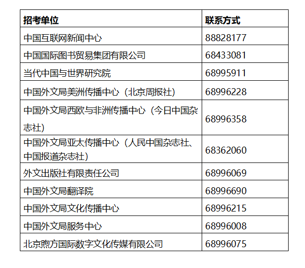 中國外文局下轄21家直屬單位。本次公開招聘涉及中國互聯(lián)網(wǎng)新聞中心、中國國際圖書貿(mào)易集團有限公司、當(dāng)代中國與世界研究院、中國外文局美洲傳播中心(北京周報社)、中國外文局西歐與非洲傳播中心(今日中國雜志社)、中國外文局亞太傳播中心(人民中國雜志社、中國報道雜志社)、外文出版社有限責(zé)任公司、中國外文局翻譯院、中國外文局文化傳播中心、中國外文局服務(wù)中心、北京煦方國際數(shù)字文化傳媒有限公司共11家企事業(yè)單位。