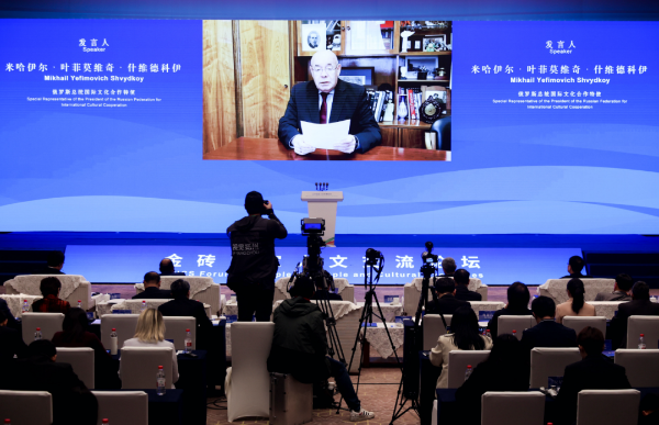 中國國家博物館館長(zhǎng)王春法,中國日?qǐng)?bào)社副總編輯王浩,中國交通建設(shè)集團(tuán)有限公司黨委副書記劉翔,中國文聯(lián)副主席、中國民間文藝家協(xié)會(huì)主席、山東工藝美術(shù)學(xué)院院長(zhǎng)潘魯生,中國文聯(lián)副主席、中國攝影家協(xié)會(huì)主席李舸,全球音樂教育聯(lián)盟主席、中國音樂學(xué)院原院長(zhǎng)王黎光,以及巴西前旅游部部長(zhǎng)、清華大學(xué)公共管理學(xué)院特聘教授福鑫,俄羅斯總統(tǒng)國際文化合作特使米哈伊爾·葉菲莫維奇·什維德科伊,俄中友協(xié)第一副主席加林娜·庫利科娃,印度音樂家聯(lián)合會(huì)秘書長(zhǎng)、印中電影學(xué)會(huì)主席基舍爾·賈瓦德等中外嘉賓出席論壇。