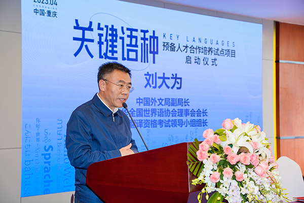 劉大為指出,黨的十八大以來,以習近平同志為核心的黨中央高度重視國際傳播工作,作出一系列重大決策部署。加強關(guān)鍵語種預備人才培養(yǎng)是落實中央三部委關(guān)于全國翻譯人才隊伍建設有關(guān)規(guī)劃的具體措施,是助力提升國家翻譯能力、解決非通用語種人才短缺問題的有益探索,關(guān)鍵語種預備人才合作培養(yǎng)試點項目前期調(diào)研扎實、準備充分,此刻啟動正當其時。他要求,關(guān)鍵語種預備人才合作培養(yǎng)工作要以有效服務國家大局為發(fā)展方向,緊密結(jié)合重慶市突出優(yōu)勢和特色,創(chuàng)新人才培養(yǎng)的思路舉措,匯聚多方優(yōu)勢資源,形成推動關(guān)鍵語種預備人才培養(yǎng)的整體合力,為加強國際傳播能力建設提供堅實人才支撐。
