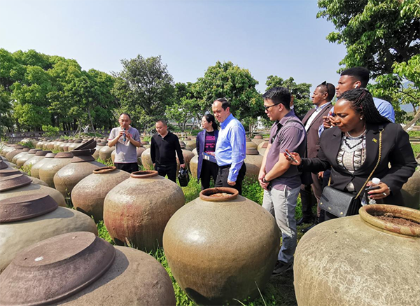 部分駐華使節(jié)和國際青年代表聆聽“曾氏曬醋”講解