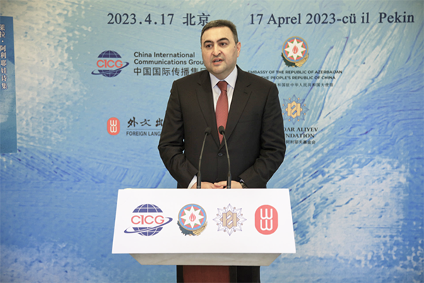 中國外文局副總編輯陳實,阿塞拜疆總統(tǒng)助理、蓋達(dá)爾·阿利耶夫基金會執(zhí)行主任阿納爾·阿拉克巴羅夫,阿塞拜疆駐華大使阿克拉姆·杰納利,文化部副部長穆拉特·胡欣諾夫,中國作家協(xié)會詩歌委員會主任、中國作家協(xié)會原副主席、著名詩人吉狄馬加等嘉賓以及阿塞拜疆來華代表團和在華公民、中國人民對外友好協(xié)會代表等70余人參加了首發(fā)式。