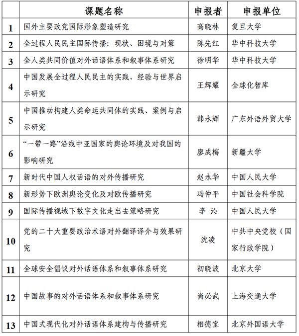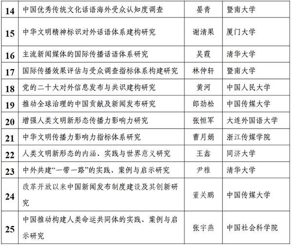 2023年度中國外文局國際傳播能力建設研究協(xié)調機制課題招標工作已結束,中國外文局所屬當代中國與世界研究院完成全部評審工作,中標課題共25個?,F(xiàn)將中標結果公示如下,公示期為2023年5月9日至5月13日。