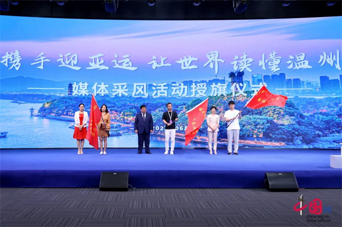 活動同期舉行了“攜手迎亞運(yùn)讓世界讀懂溫州”媒體采風(fēng)活動授旗儀式