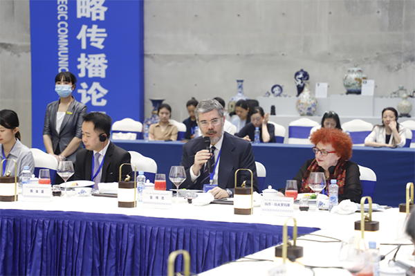 6月18日,“如‘瓷’多彩 共譜文明交流互鑒新篇章” 駐華使節(jié)對(duì)話會(huì)在江西省景德鎮(zhèn)市舉行。中國外文局副局長兼總編輯高岸明,北京外交人員服務(wù)局局長李立,景德鎮(zhèn)市委副書記、市長胡雪梅出席對(duì)話會(huì)并致辭。上海國際問題研究院院長陳東曉,景德鎮(zhèn)陶瓷大學(xué)黨委副書記、副校長呂品昌,景德鎮(zhèn)御窯博物院院長翁彥俊和約10個(gè)國家的近20位駐華使節(jié)圍繞讀懂中華陶瓷文化、深化中外文明交流互鑒進(jìn)行對(duì)話研討。