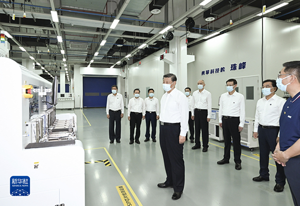 7月5日至7日,中共中央總書記、國家主席、中央軍委主席習(xí)近平在江蘇考察。這是5日下午,習(xí)近平在蘇州華興源創(chuàng)科技股份有限公司考察。(新華社記者 謝環(huán)馳 攝)