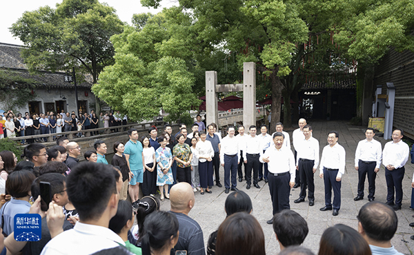 7月5日至7日,中共中央總書記、國家主席、中央軍委主席習(xí)近平在江蘇考察。這是6日上午,習(xí)近平在蘇州平江歷史文化街區(qū)考察。(新華社記者 鞠鵬 攝)