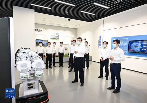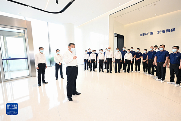 7月5日至7日,中共中央總書記、國家主席、中央軍委主席習(xí)近平在江蘇考察。這是6日下午,習(xí)近平在南京市考察南瑞集團(tuán)有限公司。(新華社記者 謝環(huán)馳 攝)