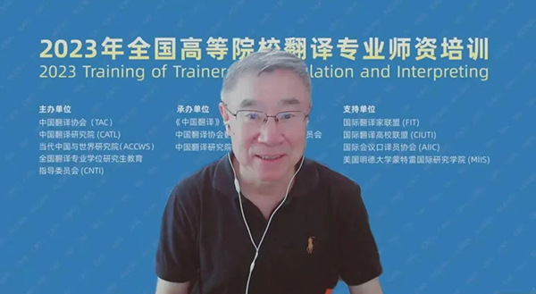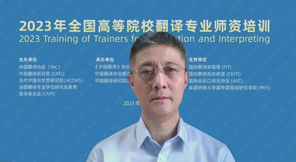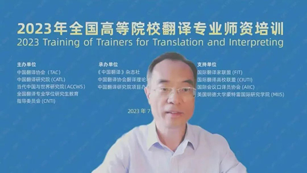 7月15日,由中國外文局所屬中國翻譯協(xié)會、中國翻譯研究院、當(dāng)代中國與世界研究院和全國翻譯專業(yè)學(xué)位研究生教育指導(dǎo)委員會聯(lián)合主辦,《中國翻譯》雜志社、中國譯協(xié)翻譯理論與翻譯教學(xué)委員會、中國翻譯研究院項目辦公室聯(lián)合承辦的2023年全國高等院校翻譯專業(yè)師資培訓(xùn)在線上開幕。中國外文局副局長兼總編輯、中國翻譯協(xié)會常務(wù)副會長兼秘書長高岸明,中國翻譯協(xié)會常務(wù)副會長、中國翻譯研究院副院長、全國翻譯專業(yè)學(xué)位研究生教育指導(dǎo)委員會學(xué)術(shù)委員會主任黃友義,全國翻譯專業(yè)學(xué)位研究生教育指導(dǎo)委員會副主任委員、廣東外語外貿(mào)大學(xué)高級翻譯學(xué)院教授趙軍峰等出席開幕式。