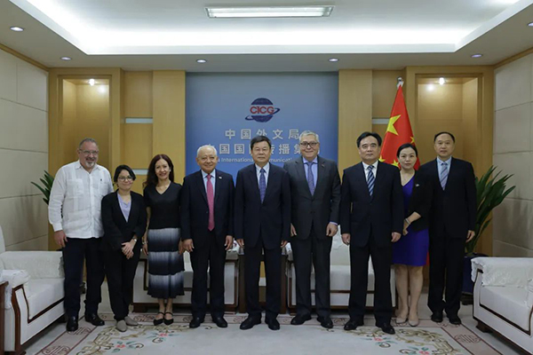 7月31日,中國(guó)外文局局長(zhǎng)杜占元會(huì)見(jiàn)到訪(fǎng)的巴拿馬駐華大使甘林和委內(nèi)瑞拉駐華大使約夫雷達(dá)。副局長(zhǎng)陸彩榮,局國(guó)際合作部、新星出版社負(fù)責(zé)同志參加會(huì)見(jiàn)。