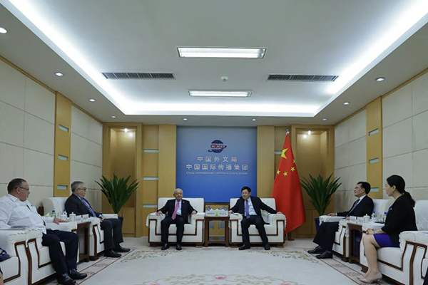 杜占元向甘林大使和約夫雷達(dá)大使表示歡迎,并介紹了中國(guó)外文局的發(fā)展歷史與業(yè)務(wù)概況。他回顧總結(jié)了外文局和拉美地區(qū)合作的歷史和現(xiàn)狀,介紹了外文局與拉美地區(qū)在人文交流等方面取得的豐碩成果。杜占元指出,中國(guó)外文局高度重視面向拉美地區(qū)的文化交流合作,雙方在出版、傳媒、智庫(kù)、翻譯等領(lǐng)域的合作不斷豐富拓展,期待與包括巴拿馬和委內(nèi)瑞拉在內(nèi)的拉美朋友們繼續(xù)攜手合作,增進(jìn)中拉文明互鑒和民心相通。