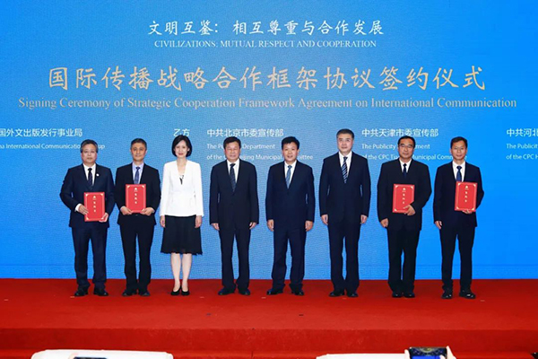 論壇期間,中國外文局與中共北京市委宣傳部、中共天津市委宣傳部、中共河北省委宣傳部舉行國際傳播戰(zhàn)略合作框架協(xié)議的簽約儀式,旨在充分發(fā)揮各自優(yōu)勢,加強國際傳播協(xié)同協(xié)作,提升國際傳播效能,共同對外講好中國故事、傳播好中國聲音。