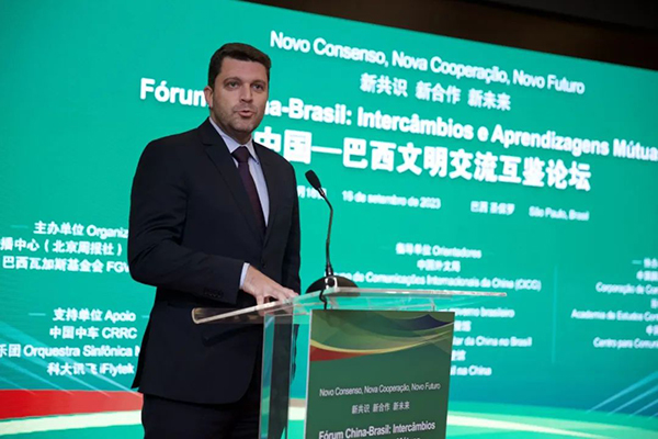當(dāng)?shù)貢r間9月16日,第二屆中國—巴西文明交流互鑒論壇在巴西圣保羅舉行。論壇主題為“新共識、新合作、新未來”。中國外文局副局長劉大為、巴西文化部國際事務(wù)特別顧問總協(xié)調(diào)員維尼修斯·古特勒·羅薩出席論壇并致辭,中國政府拉美事務(wù)特別代表邱小琪、中國駐巴西大使祝青橋、巴西駐華大使高望發(fā)表視頻致辭。中國中車董事長孫永才、中國美術(shù)館館長吳為山、巴西瓦加斯基金會法學(xué)院國際交流部主任羅德里戈·維安那作大會發(fā)言。中國駐圣保羅副總領(lǐng)事田玉震等中巴政府、智庫、媒體、青年代表約100人出席活動。