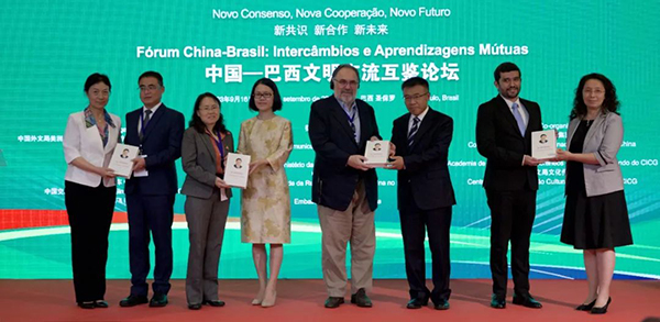 論壇還發(fā)布了系列文明交流互鑒成果,包括媒體類成果:《今日中國》“攜手開辟新時代中巴關(guān)系新未來”葡文??l(fā)布及新版葡文網(wǎng)站上線;學(xué)術(shù)研究類成果:《中國—巴西Z世代相互文化認(rèn)知度調(diào)查報(bào)告》正式發(fā)布;文化類成果:中國交響樂團(tuán)黨委書記周宇攜全團(tuán)以視頻方式演奏祝福中巴友誼曲目,現(xiàn)場展示中國外文局副局長陸彩榮等人的以中巴友誼為主題的書畫作品并贈送給參會巴方嘉賓,中國書畫家們也通過視頻對中巴友誼送去祝福;此外還配套舉辦了中國—巴西文明交流互鑒成果圖片展。