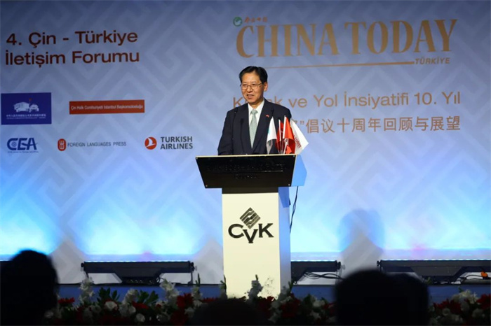 當?shù)貢r間9月20日,以“‘一帶一路’十周年回顧與展望”為主題的第四屆中土交流論壇在土耳其伊斯坦布爾舉行,中國外文局副局長兼總編輯高岸明、土耳其文化和旅游部副部長賽爾達爾·查穆、中國駐土耳其大使劉少賓、土耳其共和國投資辦公室副主任富爾康·卡拉卡亞、土耳其貿(mào)易部國際協(xié)定和歐盟司司長胡斯努·迪萊姆萊、土庫瓦茲媒體集團董事局執(zhí)行董事雅西敏·蓋貝斯出席論壇開幕式并致辭,中國駐伊斯坦布爾總領事魏曉東等中土政府、智庫、媒體、工商界代表約100人出席活動。