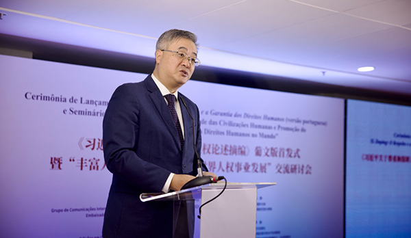 祝青橋表示,《習(xí)近平關(guān)于尊重和保障人權(quán)論述摘編》葡文版首發(fā),有助于巴西和葡語讀者領(lǐng)悟和體會習(xí)近平主席非凡的政治智慧、真摯的為民情懷和胸懷天下的宏闊視野,并為大家全面了解新時(shí)代中國人權(quán)事業(yè)提供權(quán)威讀本。中國和巴西同為發(fā)展中大國和重要新興市場國家,互為全面戰(zhàn)略伙伴,在追求國家富強(qiáng)、實(shí)現(xiàn)民眾幸福方面理念相通、目標(biāo)相同。今年4月,盧拉總統(tǒng)對中國成功進(jìn)行國事訪問,兩國元首引領(lǐng)開辟新時(shí)代中巴關(guān)系新未來。中方愿同巴方一道,落實(shí)好兩國元首達(dá)成的共識,以更高質(zhì)量、更寬領(lǐng)域、更加惠民的中巴合作助力兩國發(fā)展和人權(quán)保障。