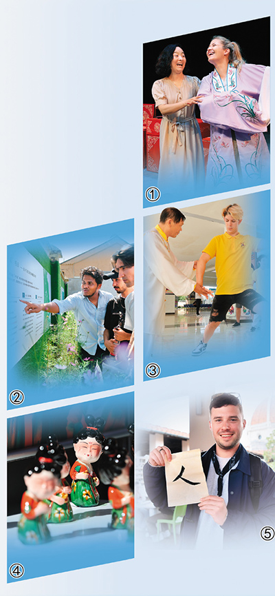 圖①:9月9日,在山東省東營市呂劇團的舞臺上,國際友人在呂劇藝術表演者的指導下,“沉浸式”體驗國家級非物質(zhì)文化遺產(chǎn)呂劇的魅力。周廣學攝(人民視覺)
