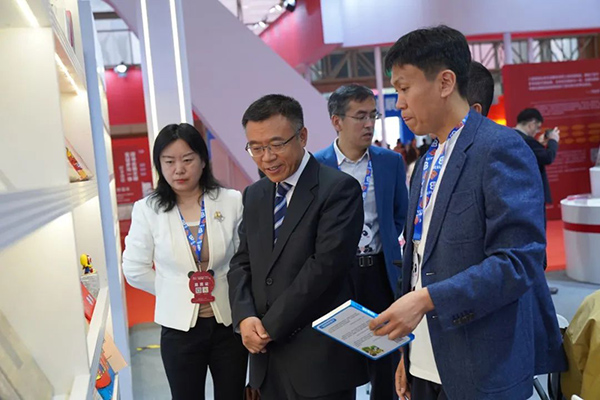 黃強(qiáng)(右二)到中國(guó)外文局展區(qū)視察,劉大為(右三)陪同