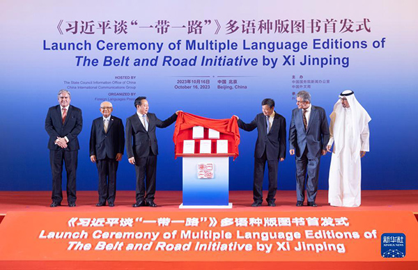 首發(fā)式上,中外嘉賓代表共同為《習(xí)近平談“一帶一路”》多語種版圖書揭幕,中方向外方嘉賓贈送了新書?!读?xí)近平談“一帶一路”》英、法、俄文版已由外文出版社出版發(fā)行。