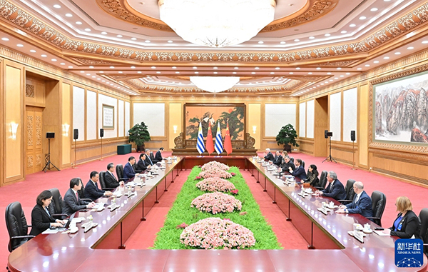 習(xí)近平介紹了中國(guó)式現(xiàn)代化的內(nèi)涵意義,表示中方愿同烏方加強(qiáng)治國(guó)理政交流,增進(jìn)政治互信,共享發(fā)展機(jī)遇,推動(dòng)實(shí)現(xiàn)各自國(guó)家的現(xiàn)代化和世界現(xiàn)代化。雙方要密切立法機(jī)構(gòu)、政黨、地方友好交流合作,以簽署共建“一帶一路”合作規(guī)劃為契機(jī),加強(qiáng)發(fā)展戰(zhàn)略對(duì)接,培育服務(wù)貿(mào)易、數(shù)字經(jīng)濟(jì)、清潔能源等領(lǐng)域合作新動(dòng)能,推動(dòng)中烏共建“一帶一路”進(jìn)入高質(zhì)量發(fā)展新階段。歡迎更多烏拉圭優(yōu)質(zhì)農(nóng)牧產(chǎn)品和高附加值產(chǎn)品進(jìn)入中國(guó)市場(chǎng),鼓勵(lì)中國(guó)企業(yè)赴烏投資興業(yè),希望烏方繼續(xù)為中國(guó)企業(yè)提供良好營(yíng)商環(huán)境。雙方要促進(jìn)文化、體育等人文交流,為兩國(guó)人員往來(lái)創(chuàng)造更多便利條件,中方愿向?yàn)醴教峁└嗒?jiǎng)學(xué)金名額。