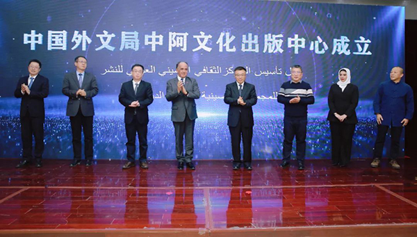 劉大為、阿迪勒·阿拉比、王廣大、納斯拉·哈吉里及中國外文局中阿文化出版中心部分成員單位負(fù)責(zé)人共同為中阿文化出版中心成立揭幕。