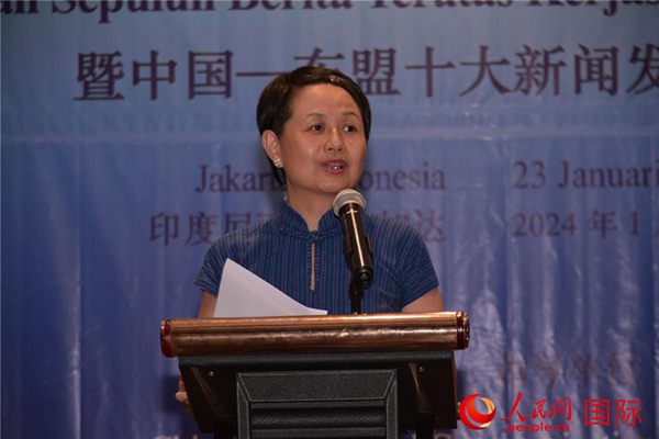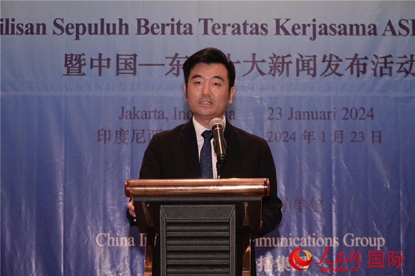 郭延軍發(fā)布“2023年中國—東盟十大新聞”。人民網(wǎng)記者 曹師韻攝