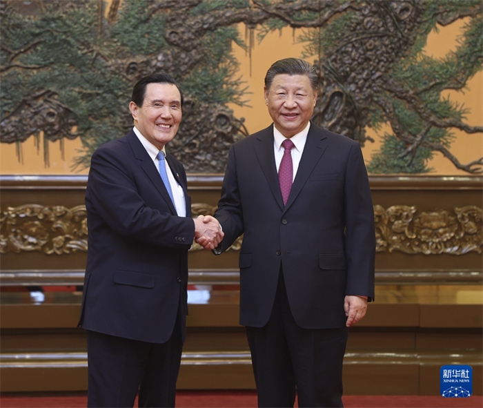 4月10日下午,中共中央總書記習(xí)近平在北京會見馬英九一行。新華社記者鞠鵬攝