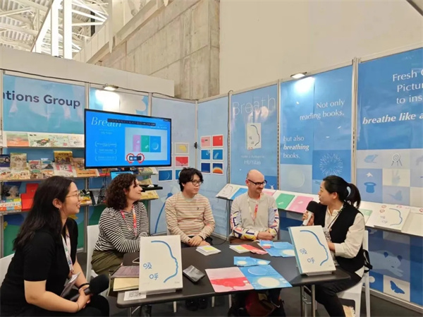 《吸呼》一書入選“中國最美的書”,并先后榮獲包括dPICTUS在內的全球多個知名圖書大獎。活動現(xiàn)場,《吸呼》作者胡一凡為現(xiàn)場嘉賓介紹了創(chuàng)作理念和出版情況。來自巴西、法國、澳大利亞等國家的出版機構負責人和知名童書推廣人圍繞該書進行了觀點分享,并表達了出版意向。書展期間,該書正式簽約輸出2個國家。