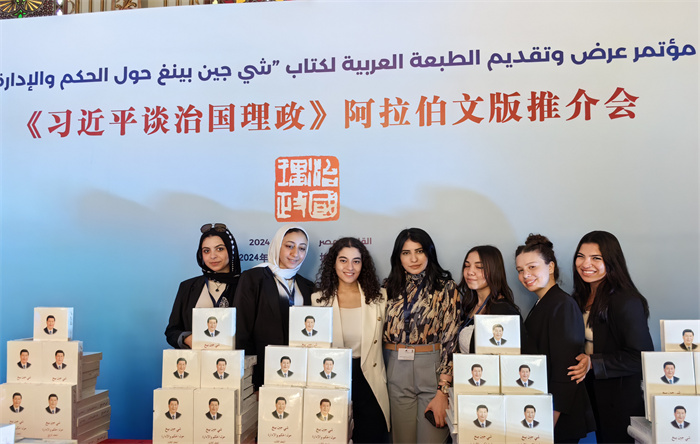 推介會上,杜占元、廖力強(qiáng)共同向埃方嘉賓贈送了《習(xí)近平談治國理政》第四卷阿拉伯文版圖書。