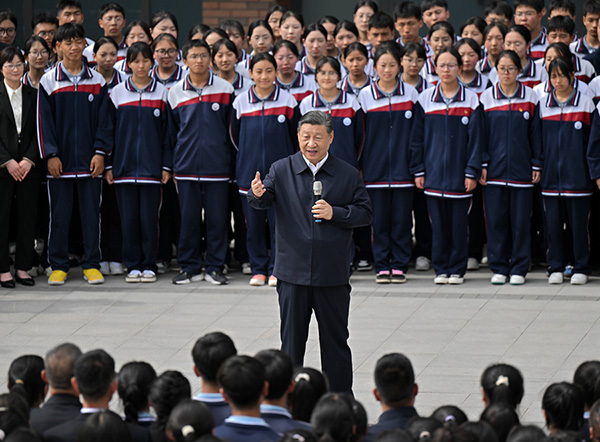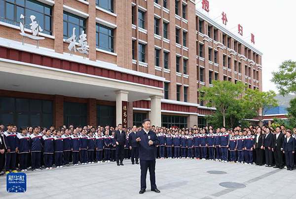 6月18日至19日,中共中央總書記、國家主席、中央軍委主席習(xí)近平在青??疾臁_@是18日下午,習(xí)近平在果洛西寧民族中學(xué)考察時(shí),同師生們親切交流。(新華社記者 謝環(huán)馳 攝)