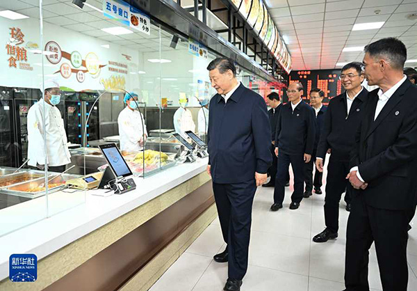 6月18日至19日,中共中央總書記、國家主席、中央軍委主席習(xí)近平在青海考察。這是18日下午,習(xí)近平在果洛西寧民族中學(xué)食堂察看學(xué)生就餐條件。(新華社記者 謝環(huán)馳 攝)