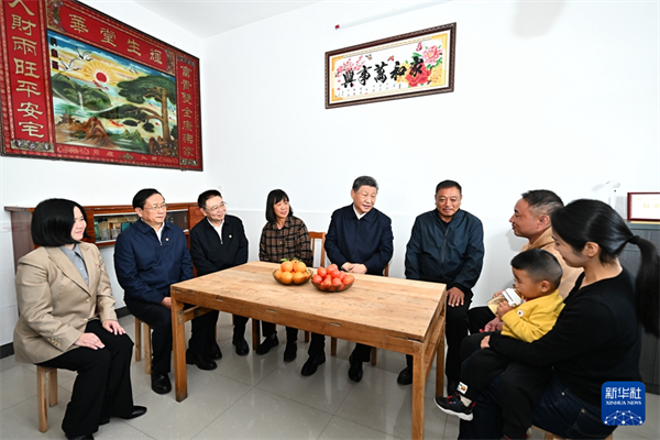 在村民熊成龍家,習(xí)近平仔細(xì)察看家居生活,同一家人圍坐在一起,了解生產(chǎn)、孩子就業(yè)創(chuàng)業(yè)、家庭收入、養(yǎng)老醫(yī)療等情況。聽說這些年城鄉(xiāng)基本公共服務(wù)體系不斷健全,農(nóng)民物質(zhì)文化生活越來越有保障,習(xí)近平很高興。他希望一家人繼續(xù)努力,把生產(chǎn)、生活搞得更好,把孩子培養(yǎng)好,讓好日子越過越紅火。