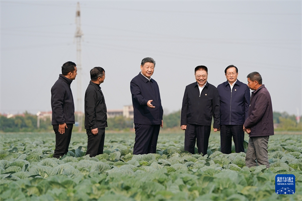11月4日至6日,中共中央總書記、國家主席、中央軍委主席習(xí)近平在湖北考察。這是5日上午,習(xí)近平在咸寧市嘉魚縣潘家灣鎮(zhèn)十里蔬菜長廊考察時(shí),走進(jìn)田間,察看蔬菜長勢。(新華社記者 謝環(huán)馳 攝)