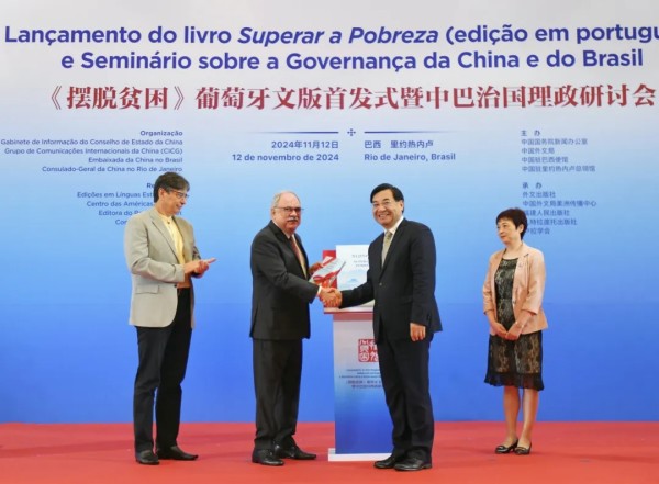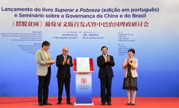當?shù)貢r間11月12日,在習近平主席即將赴里約熱內(nèi)盧出席二十國集團領導人第十九次峰會并對巴西進行國事訪問前夕,《擺脫貧困》葡萄牙文版首發(fā)式暨中巴治國理政研討會在巴西里約熱內(nèi)盧舉行。