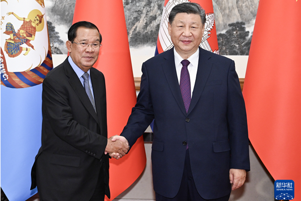 習(xí)近平指出,當(dāng)前,國(guó)際形勢(shì)變亂交織,全球性挑戰(zhàn)層出不窮,考驗(yàn)著各國(guó)的應(yīng)對(duì)和選擇。中柬兩國(guó)都致力于做世界的和平力量、發(fā)展力量、進(jìn)步力量。中方將繼續(xù)支持柬埔寨在國(guó)際和地區(qū)事務(wù)中發(fā)揮更大作用,壯大“全球南方”力量,支持東盟堅(jiān)持戰(zhàn)略自主,維護(hù)中心地位,堅(jiān)決反對(duì)外部勢(shì)力將冷戰(zhàn)思維引入本地區(qū),堅(jiān)定不移推動(dòng)?xùn)|盟一體化和共同體建設(shè)。中方愿同柬方堅(jiān)定道不改、志不變的決心,增強(qiáng)底線思維,加強(qiáng)協(xié)作和配合,共同應(yīng)對(duì)各種風(fēng)險(xiǎn)。