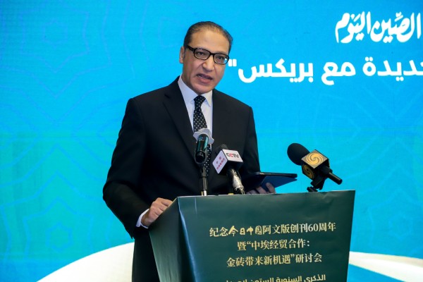 當(dāng)?shù)貢r(shí)間12月22日,紀(jì)念《今日中國(guó)》阿拉伯文版創(chuàng)刊60周年暨“中埃經(jīng)貿(mào)合作:金磚帶來新機(jī)遇”研討會(huì)在埃及開羅舉辦。中國(guó)外文局局長(zhǎng)杜占元,埃及前總理、蘭花獎(jiǎng)獲得者埃薩姆·謝拉夫,中國(guó)駐埃及大使館公使銜參贊朱曉鐘,埃及今日消息報(bào)業(yè)集團(tuán)董事長(zhǎng)伊斯拉姆·阿菲菲,埃及總理府信息與決策支持中心社會(huì)聯(lián)絡(luò)部主任赫蒂?gòu)亍ぐ⒗ǖ纫砸曨l和現(xiàn)場(chǎng)結(jié)合的形式出席并致辭,來自中埃雙方政府部門、媒體、高校、智庫(kù)等各界嘉賓,以及雜志作者、讀者代表80余人應(yīng)邀出席活動(dòng)。