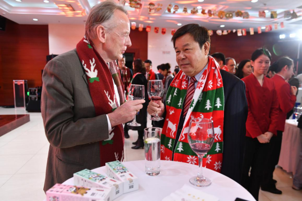 12月23日,中國(guó)外文局舉辦外國(guó)專家新年招待會(huì),中國(guó)外文局局長(zhǎng)杜占元出席招待會(huì)并致辭。副局長(zhǎng)劉大為、于濤、于運(yùn)全,局總編輯高岸明,人力資源社會(huì)保障部(國(guó)家外國(guó)專家局)外國(guó)專家服務(wù)司副司長(zhǎng)史麥男,國(guó)家移民局外國(guó)人管理司副司長(zhǎng)朱雷出席招待會(huì)。
