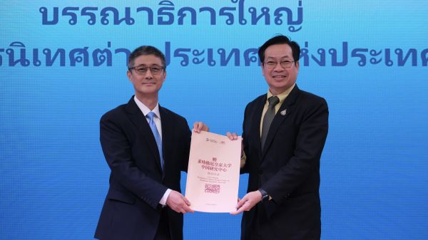1月20日,泰國素叻他尼皇家大學中國圖書中心揭牌儀式暨“我讀中國:中泰青年對話會”活動在泰國素叻他尼皇家大學舉行。中國外文局總編輯高岸明、中國駐宋卡總領館代總領事張小溶、素叻他尼皇家大學校長瓦塔納·臘塔納鵬、亞太智庫主任威倫·披差翁帕迪等中泰嘉賓及中泰青年代表參加活動。